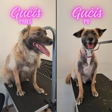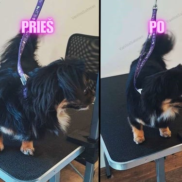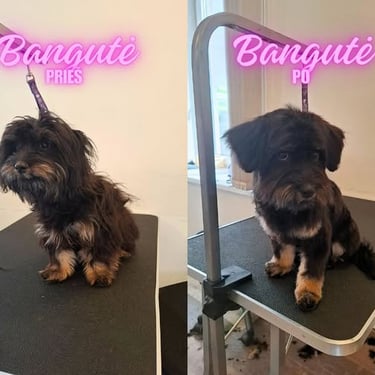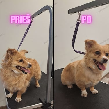 Prašome pavedžioti šuniukus prieš kirpimą.
